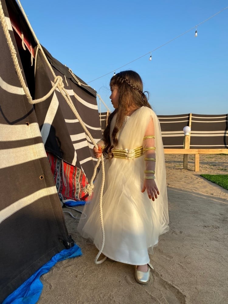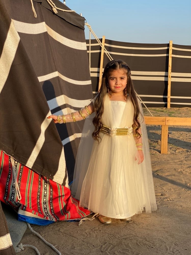 نقدم لك فستان ليوم التاسيس تفتة سلا فاخر، الذي يأتي بتصميم مبتكر يحتضن الألوان الأنيقة حيث يمتزج اللون الأسود مع الوان السدو التراثيه ليظهر بأبــها صورة ليمنح طفلك إطلالة متجددة وجذابة تتلاءم مع احتفالات يوم التاسيس ، مما يجعل هذا الفستان لا غنى عنه لكل أميره صغيره .حيث تم اختيار قماش المخمل ليتلائم مع اجواء الطقس بيوم التاسيس
